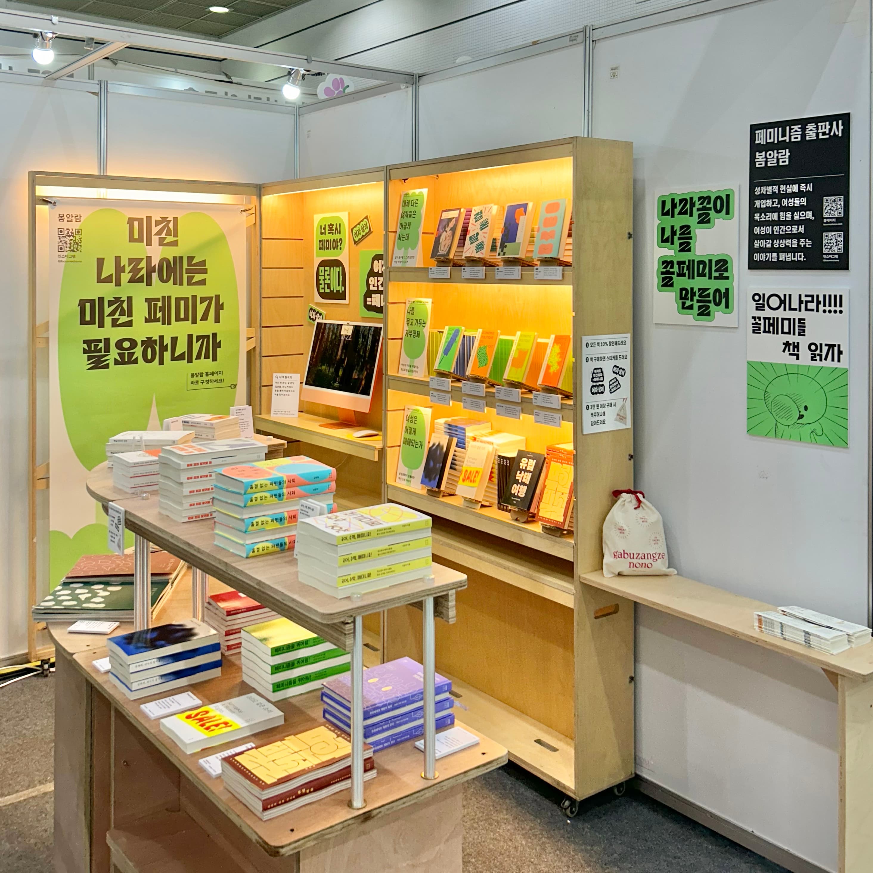 페미니즘 출판사 봄알람은 2022년부터 매년 서울국제도서전에 참가하고 있다. 작년까지는 독립 출판 특별 구역인 ‘책마을’에 테이블 단위로 참가했다. 이번 년에도 여느 때처럼 ‘책마을’로 참가 신청했지만 작년 도서전의 인기가 뜨거웠던 탓인지 참가 신청이 급증해 경쟁률이 높아졌고, 아쉽게도 봄알람은 선정되지 못했다. 안 그래도 점점 책 종류가 많아져 테이블 하나만으로는 곤란함을 느끼던 차에 부스로 가라는 운명의 계시인가 싶었다.